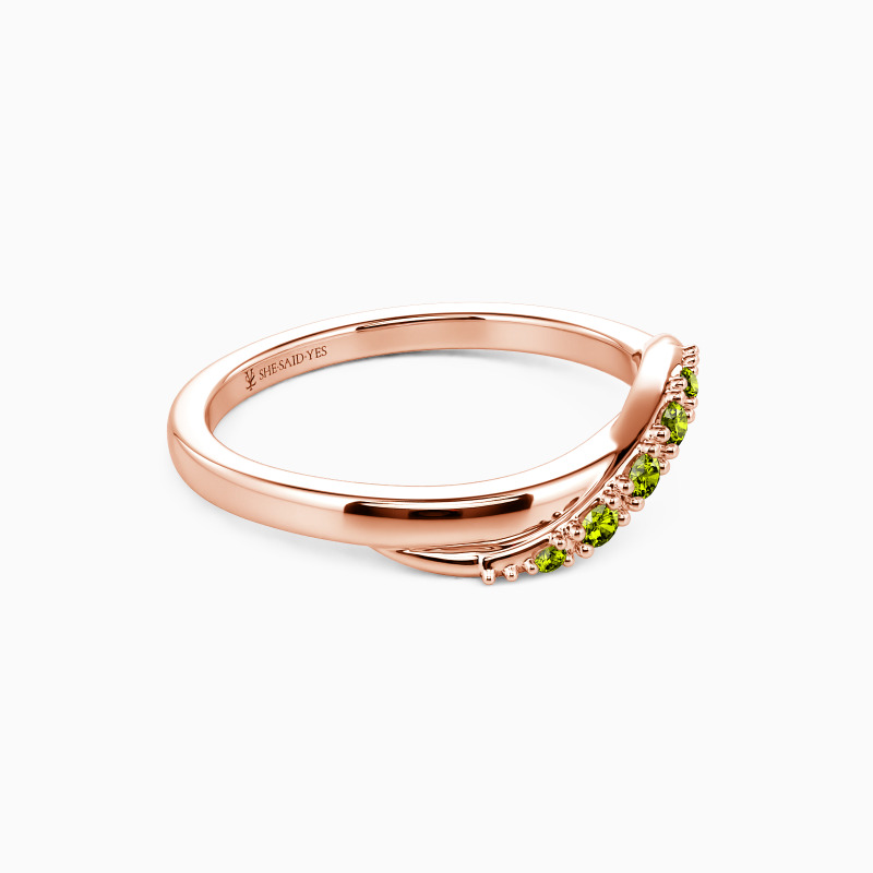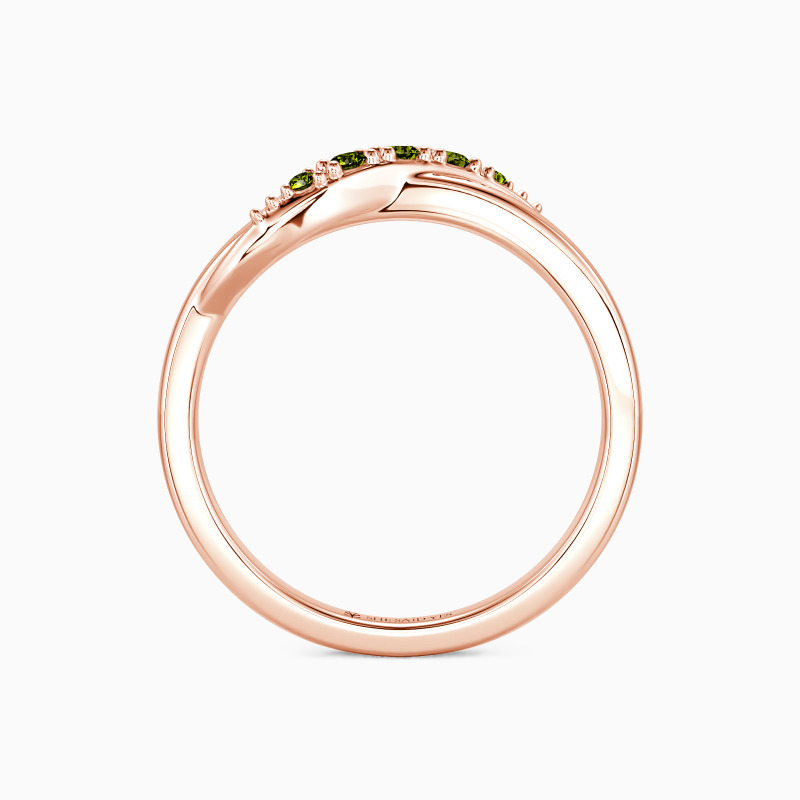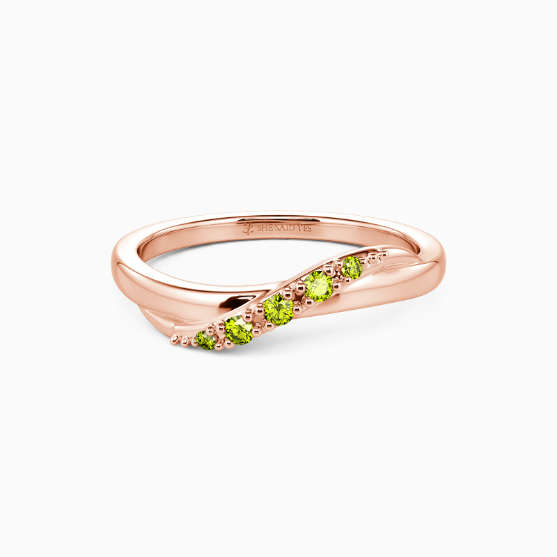 Delicate and radiant, this wedding band boasts a flawless high-polish design that enhances its brilliance. At its heart, a sparkling ribbon of gemstones winds gracefully, their facets capturing light with every turn. The seamless blend of polished metal and shimmering stones creates an effect that's both refined and eye-catching—perfect for a touch of understated glamour.