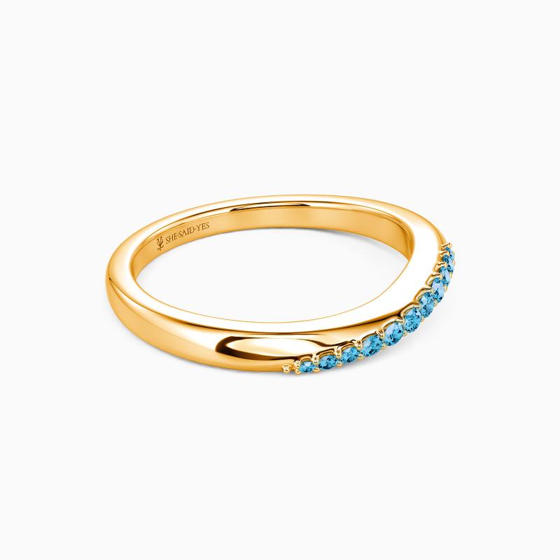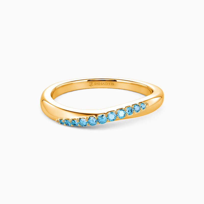 Graceful and radiant, this wedding band features a softly curved silhouette with an elegant twisted design, symbolizing an eternal bond. A subtle row of pavé-set gemstones adds a touch of brilliance, while the high-polish finish enhances the band's luminous glow. A harmonious balance of movement and elegance, this ring celebrates love with understated sophistication.