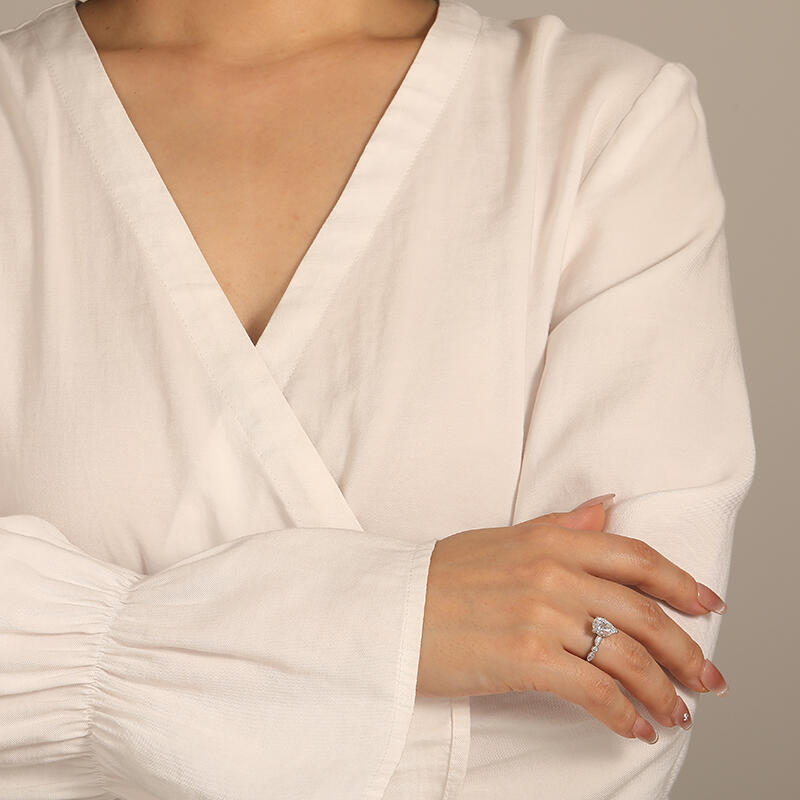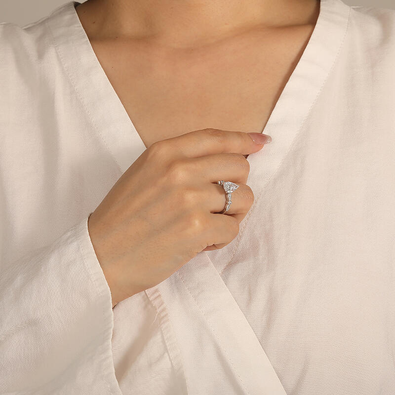 "Love Me Tender" Pear Cut Side Stone Engagement Ring