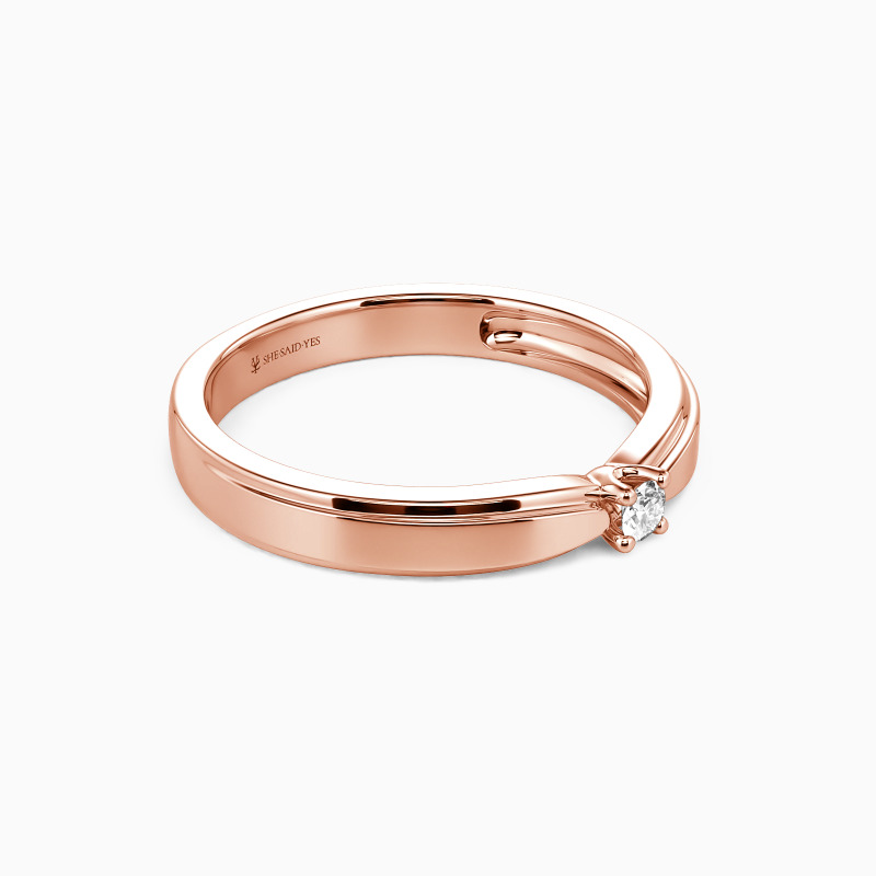Timeless and distinguished, this men's wedding ring features a flawless high-polish finish, its bold silhouette accentuated by a single round gem in a refined prong setting. The interplay of mirrored metal and brilliant stone creates a striking yet understated elegance—ideal for the groom who values enduring style and quiet confidence.