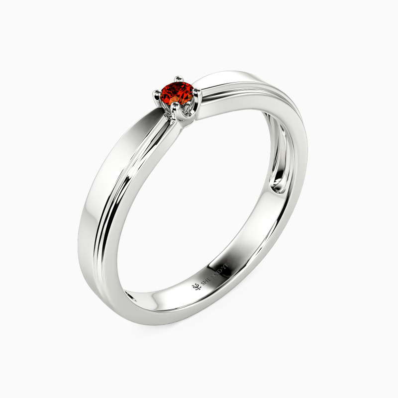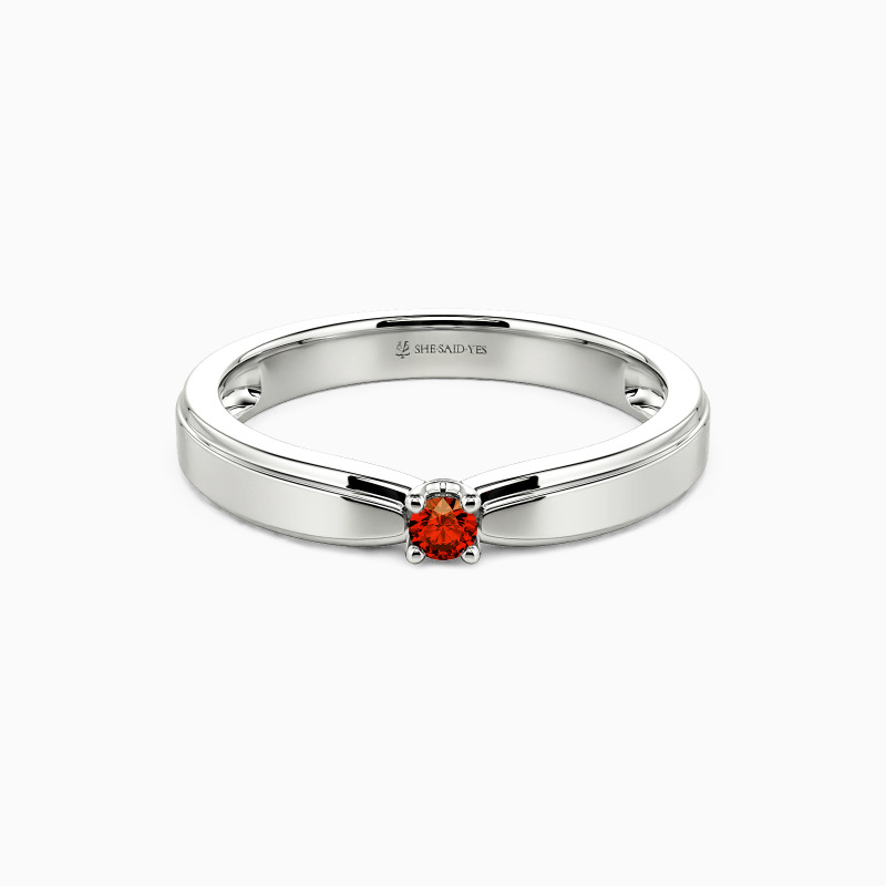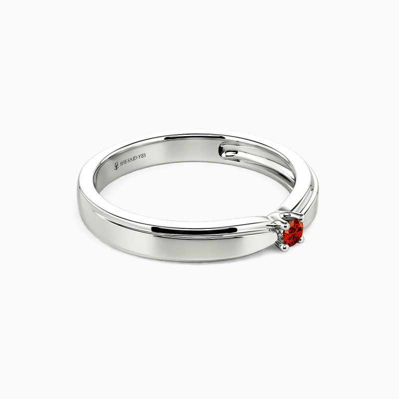 Timeless and distinguished, this men's wedding ring features a flawless high-polish finish, its bold silhouette accentuated by a single round gem in a refined prong setting. The interplay of mirrored metal and brilliant stone creates a striking yet understated elegance—ideal for the groom who values enduring style and quiet confidence.