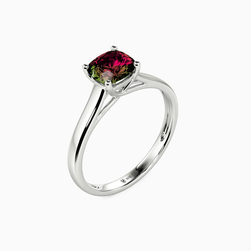 Simple yet divine, ask for her hand with this delicate solitaire. Standing tall in a traditional four-prong setting, a stylish cushion-cut center stone radiates exceptional sparkle. An amazing look for the woman you adore, this engagement ring is finished with a shining polished shine.