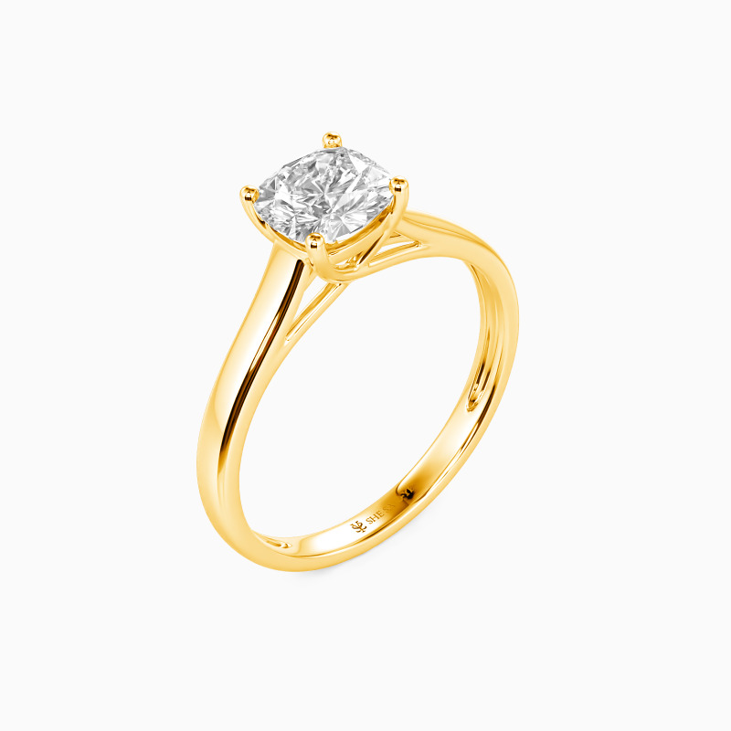 Simple yet divine, ask for her hand with this delicate solitaire. Standing tall in a traditional four-prong setting, a stylish cushion-cut center stone radiates exceptional sparkle. An amazing look for the woman you adore, this engagement ring is finished with a shining polished shine.
