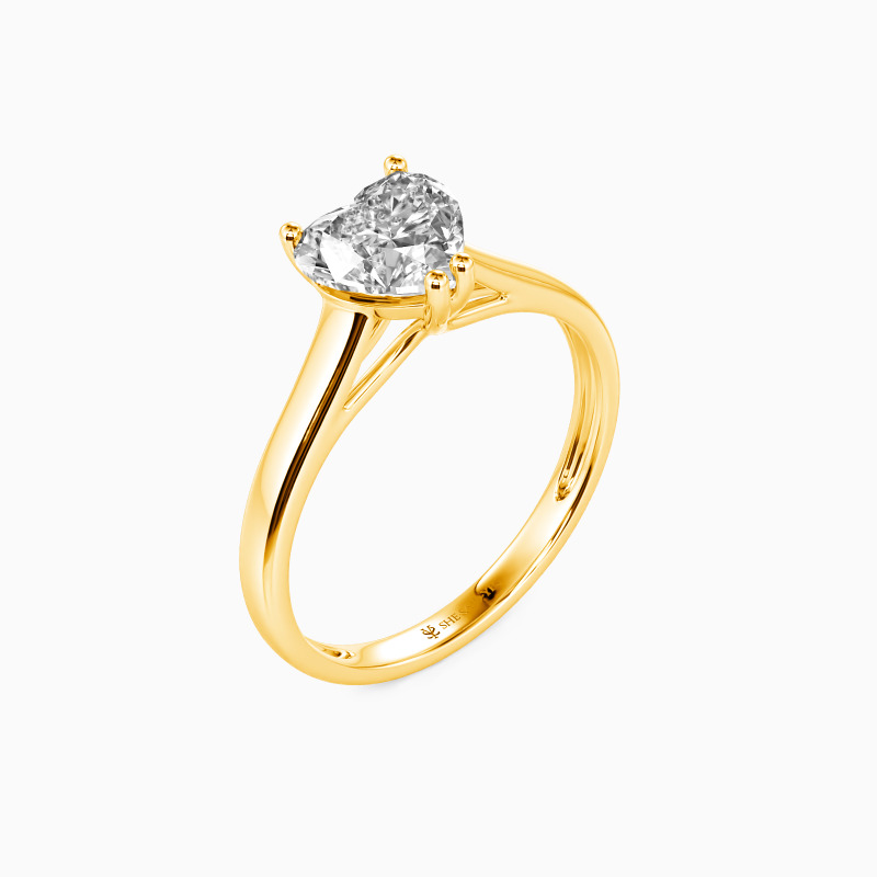 Simple yet divine, ask for her hand with this delicate solitaire. Standing tall in a traditional four-prong setting, a stylish heart-cut center stone radiates exceptional sparkle. An amazing look for the woman you adore, this engagement ring is finished with a shining polished shine.