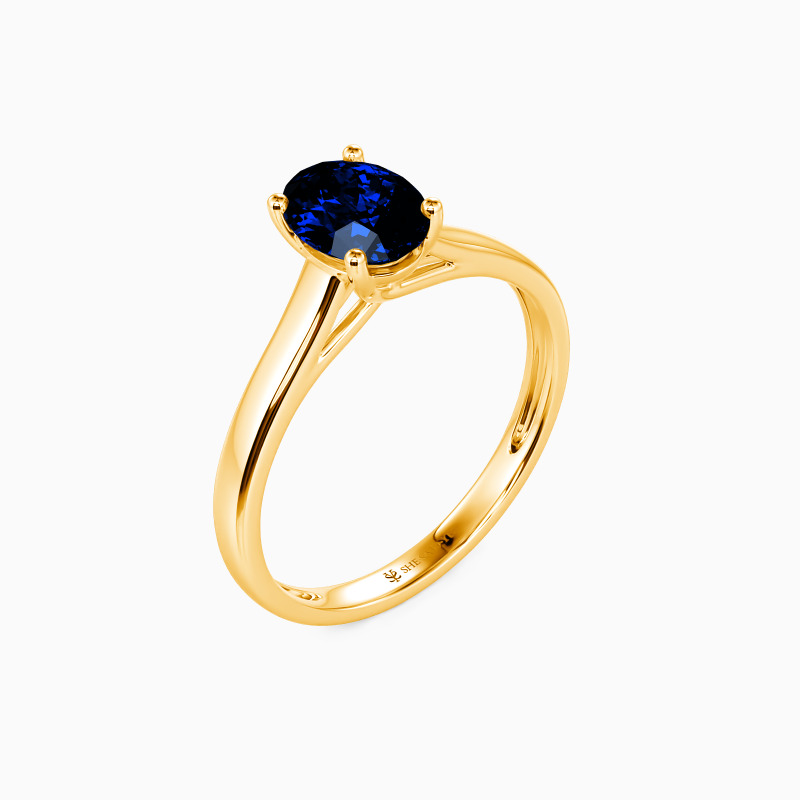 Simple yet divine, ask for her hand with this delicate solitaire. Standing tall in a traditional four-prong setting, a stylish oval-cut center stone radiates exceptional sparkle. An amazing look for the woman you adore, this engagement ring is finished with a shining polished shine.