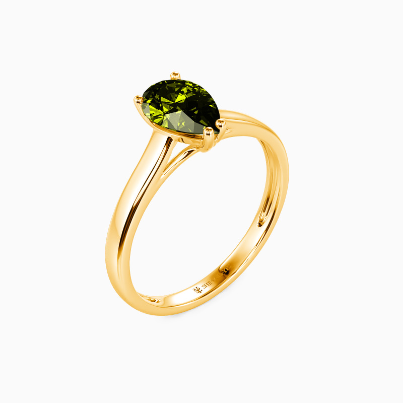 Simple yet divine, ask for her hand with this delicate solitaire. Standing tall in a traditional four-prong setting, a stylish pear-cut center stone radiates exceptional sparkle. An amazing look for the woman you adore, this engagement ring is finished with a shining polished shine.