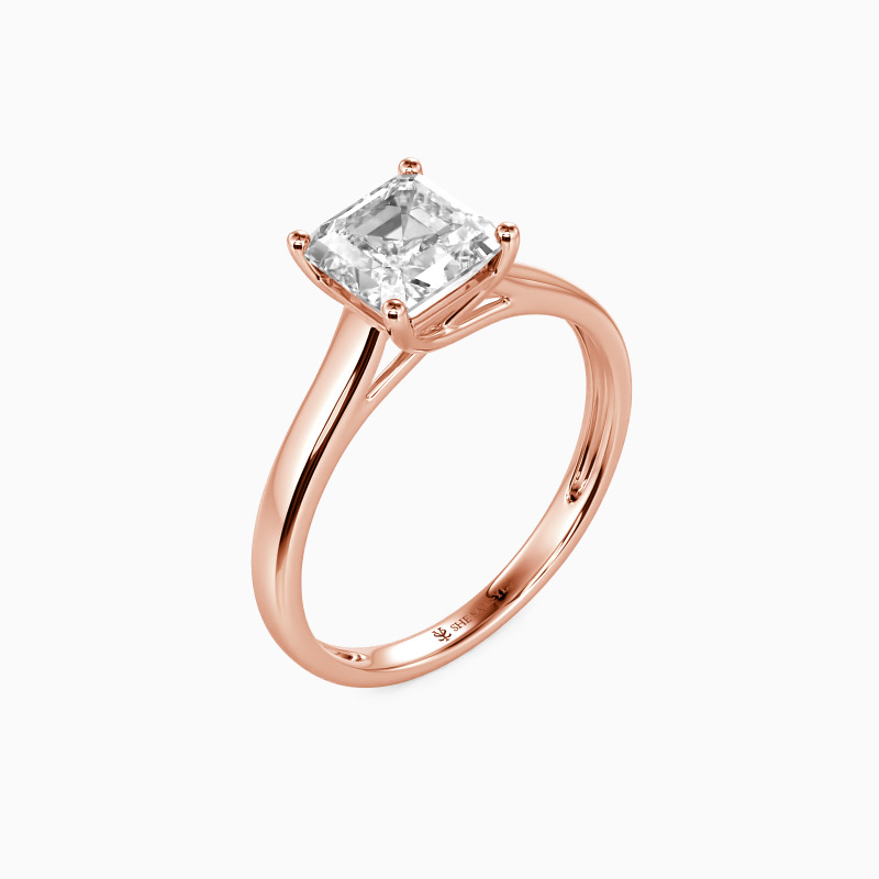 Simple yet divine, ask for her hand with this delicate solitaire. Standing tall in a traditional four-prong setting, a stylish Asscher-cut center stone radiates exceptional sparkle. An amazing look for the woman you adore, this engagement ring is finished with a shining polished shine.
