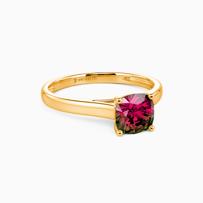 Simple yet divine, ask for her hand with this delicate solitaire. Standing tall in a traditional four-prong setting, a stylish cushion-cut center stone radiates exceptional sparkle. An amazing look for the woman you adore, this engagement ring is finished with a shining polished shine.