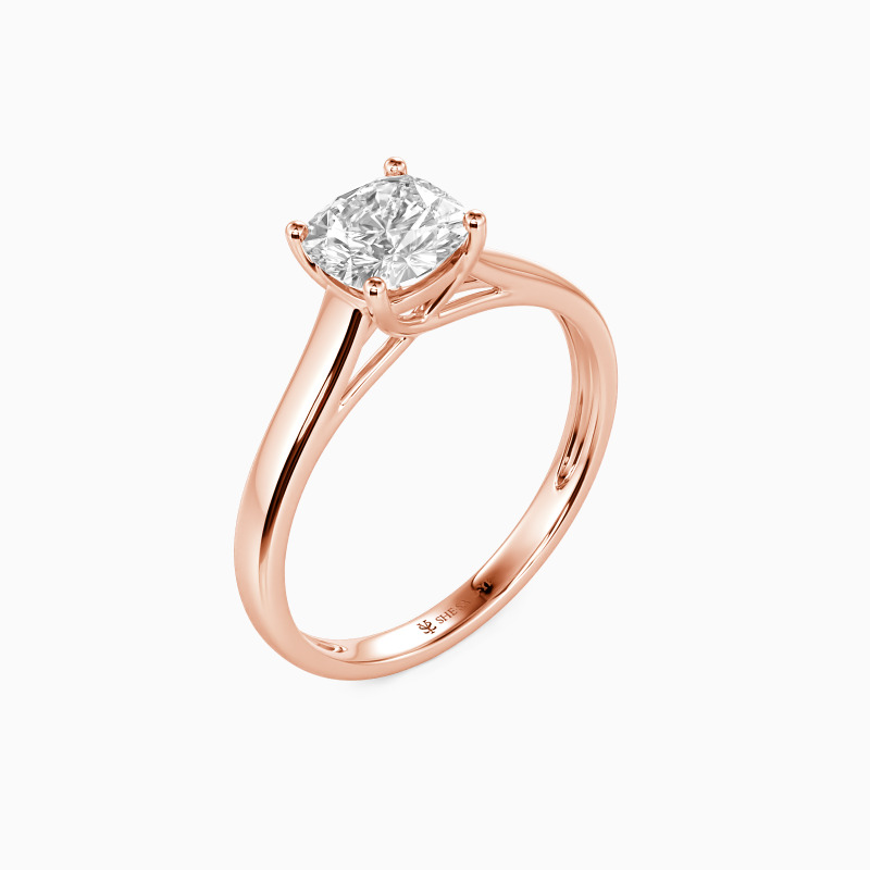 Simple yet divine, ask for her hand with this delicate solitaire. Standing tall in a traditional four-prong setting, a stylish cushion-cut center stone radiates exceptional sparkle. An amazing look for the woman you adore, this engagement ring is finished with a shining polished shine.