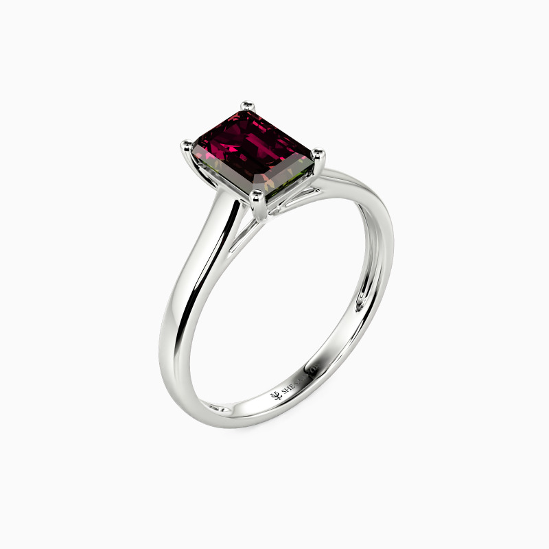 Simple yet divine, ask for her hand with this delicate solitaire. Standing tall in a traditional four-prong setting, a stylish Emerald-cut center stone radiates exceptional sparkle. An amazing look for the woman you adore, this engagement ring is finished with a shining polished shine.