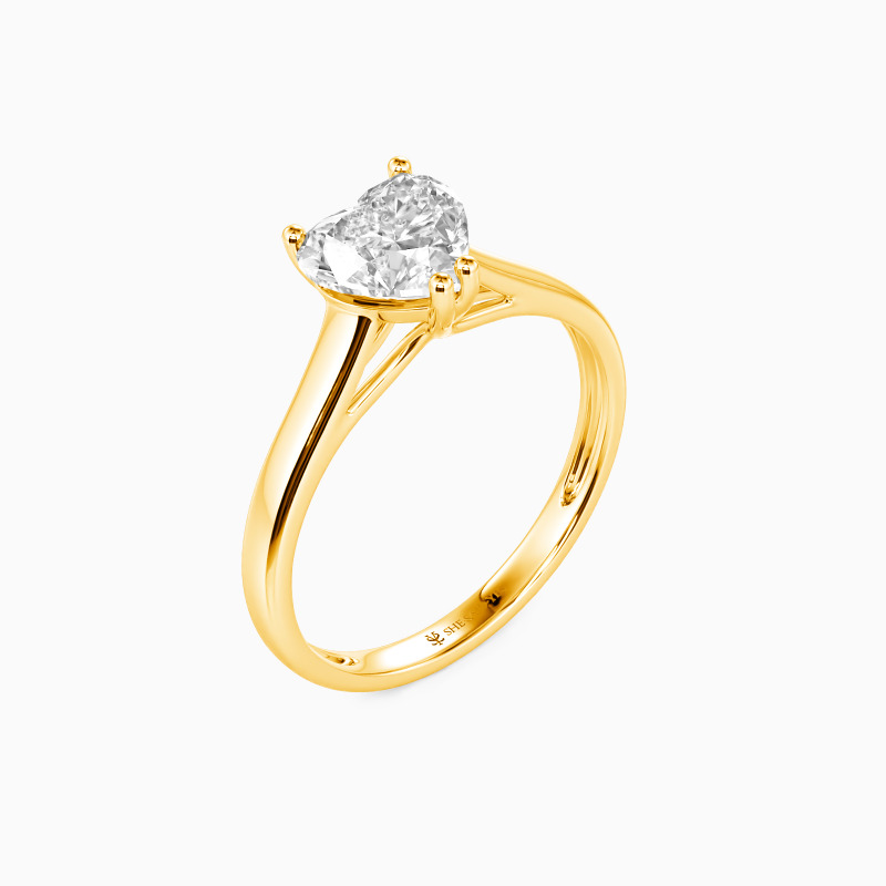 Simple yet divine, ask for her hand with this delicate solitaire. Standing tall in a traditional four-prong setting, a stylish heart-cut center stone radiates exceptional sparkle. An amazing look for the woman you adore, this engagement ring is finished with a shining polished shine.