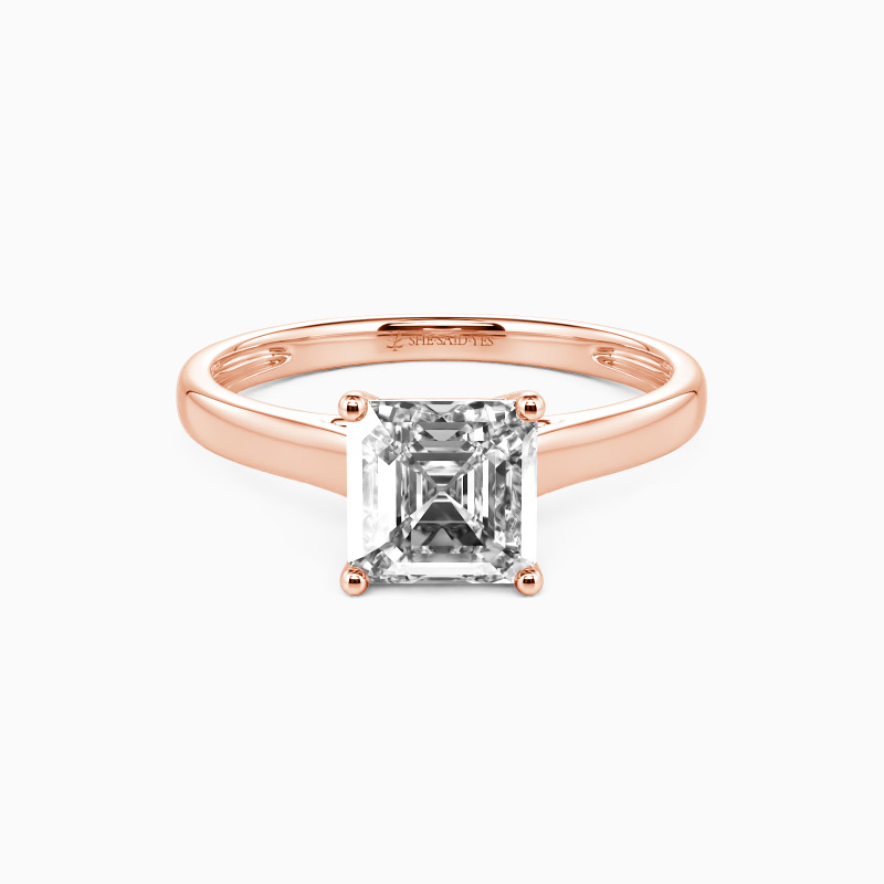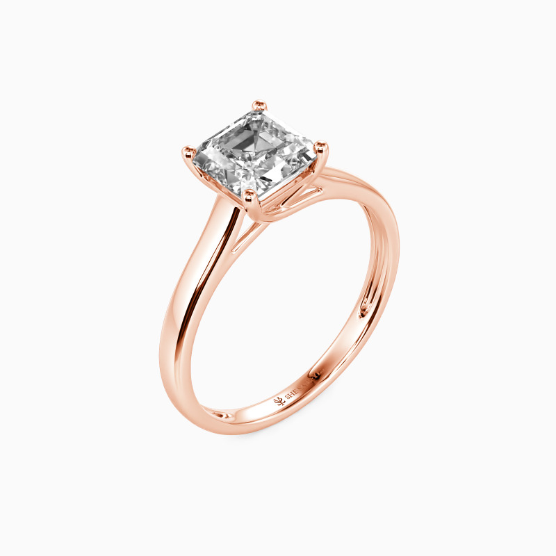 Simple yet divine, ask for her hand with this delicate solitaire. Standing tall in a traditional four-prong setting, a stylish Asscher-cut center stone radiates exceptional sparkle. An amazing look for the woman you adore, this engagement ring is finished with a shining polished shine.