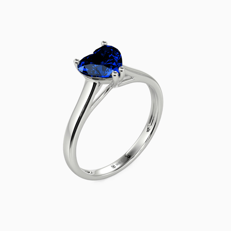 Simple yet divine, ask for her hand with this delicate solitaire. Standing tall in a traditional four-prong setting, a stylish heart-cut center stone radiates exceptional sparkle. An amazing look for the woman you adore, this engagement ring is finished with a shining polished shine.