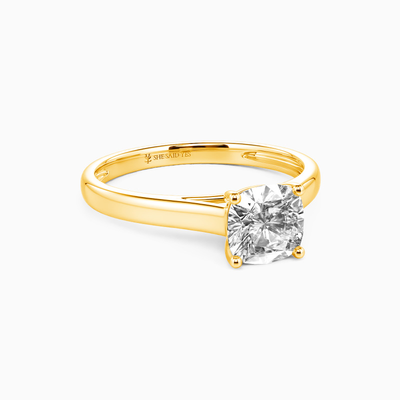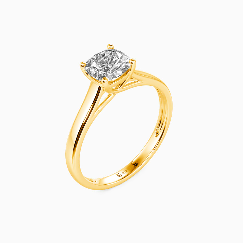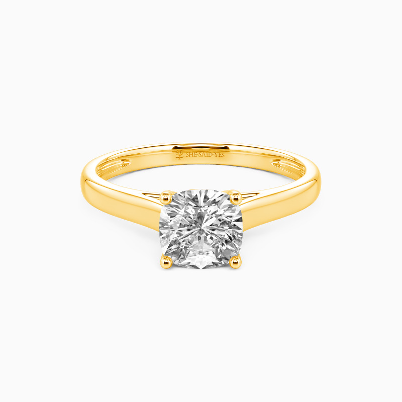 Simple yet divine, ask for her hand with this delicate solitaire. Standing tall in a traditional four-prong setting, a stylish cushion-cut center stone radiates exceptional sparkle. An amazing look for the woman you adore, this engagement ring is finished with a shining polished shine.