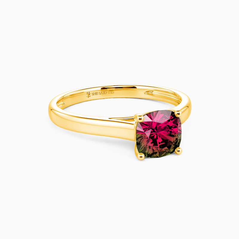 Simple yet divine, ask for her hand with this delicate solitaire. Standing tall in a traditional four-prong setting, a stylish cushion-cut center stone radiates exceptional sparkle. An amazing look for the woman you adore, this engagement ring is finished with a shining polished shine.
