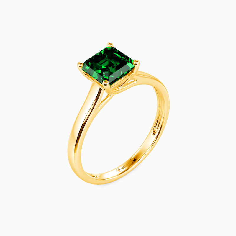 Simple yet divine, ask for her hand with this delicate solitaire. Standing tall in a traditional four-prong setting, a stylish Asscher-cut center stone radiates exceptional sparkle. An amazing look for the woman you adore, this engagement ring is finished with a shining polished shine.