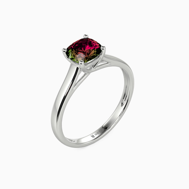 Simple yet divine, ask for her hand with this delicate solitaire. Standing tall in a traditional four-prong setting, a stylish cushion-cut center stone radiates exceptional sparkle. An amazing look for the woman you adore, this engagement ring is finished with a shining polished shine.