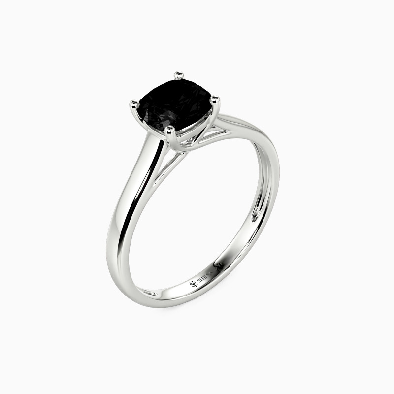 Simple yet divine, ask for her hand with this delicate solitaire. Standing tall in a traditional four-prong setting, a stylish cushion-cut center stone radiates exceptional sparkle. An amazing look for the woman you adore, this engagement ring is finished with a shining polished shine.