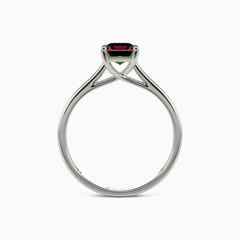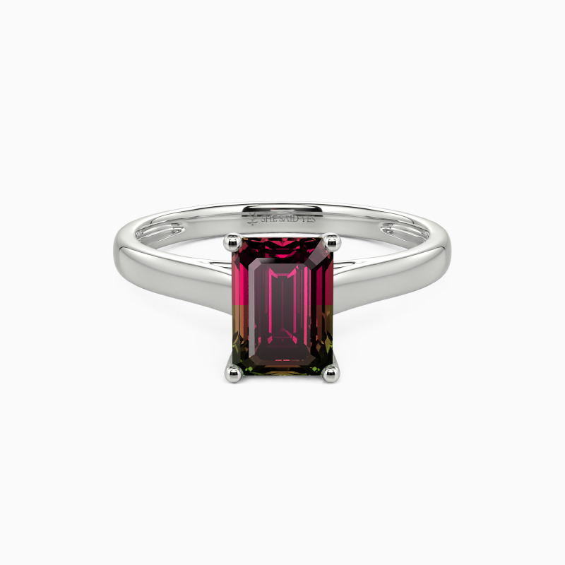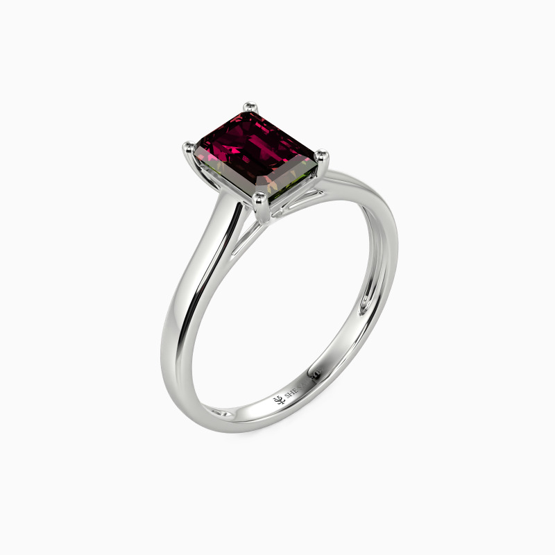 Simple yet divine, ask for her hand with this delicate solitaire. Standing tall in a traditional four-prong setting, a stylish Emerald-cut center stone radiates exceptional sparkle. An amazing look for the woman you adore, this engagement ring is finished with a shining polished shine.