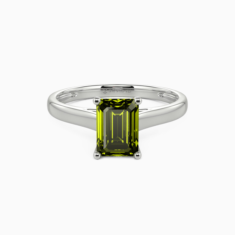 Simple yet divine, ask for her hand with this delicate solitaire. Standing tall in a traditional four-prong setting, a stylish Emerald-cut center stone radiates exceptional sparkle. An amazing look for the woman you adore, this engagement ring is finished with a shining polished shine.