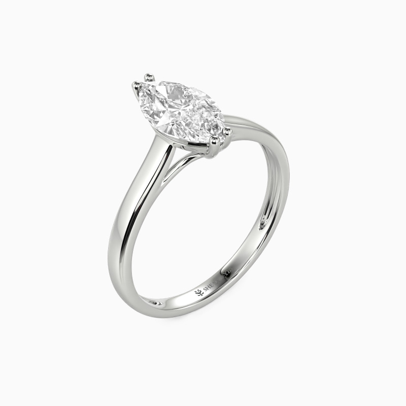 Simple yet divine, ask for her hand with this delicate solitaire. Standing tall in a traditional four-prong setting, a stylish marquise-cut center stone radiates exceptional sparkle. An amazing look for the woman you adore, this engagement ring is finished with a shining polished shine.