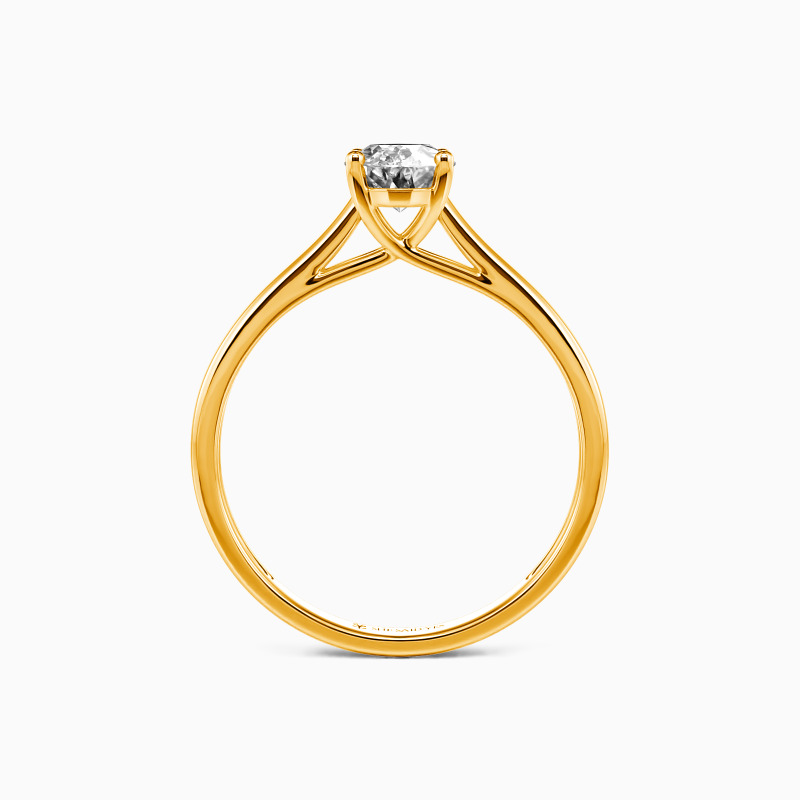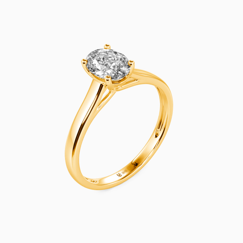 Simple yet divine, ask for her hand with this delicate solitaire. Standing tall in a traditional four-prong setting, a stylish oval-cut center stone radiates exceptional sparkle. An amazing look for the woman you adore, this engagement ring is finished with a shining polished shine.