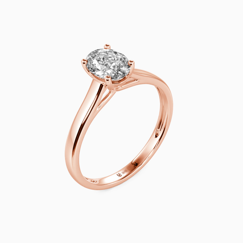 Simple yet divine, ask for her hand with this delicate solitaire. Standing tall in a traditional four-prong setting, a stylish oval-cut center stone radiates exceptional sparkle. An amazing look for the woman you adore, this engagement ring is finished with a shining polished shine.