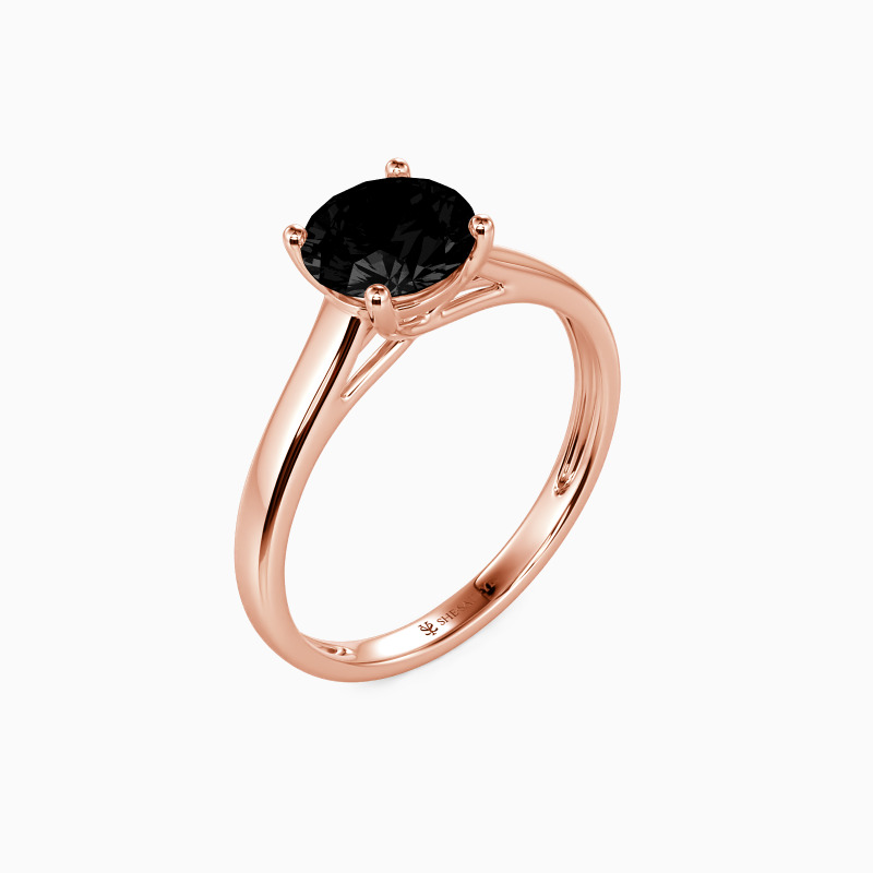 Simple yet divine, ask for her hand with this delicate solitaire. Standing tall in a traditional four-prong setting, a stylish round-cut center stone radiates exceptional sparkle. An amazing look for the woman you adore, this engagement ring is finished with a shining polished shine.