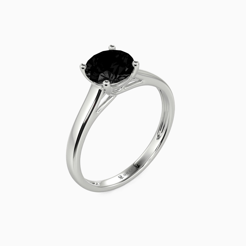 Simple yet divine, ask for her hand with this delicate solitaire. Standing tall in a traditional four-prong setting, a stylish round-cut center stone radiates exceptional sparkle. An amazing look for the woman you adore, this engagement ring is finished with a shining polished shine.