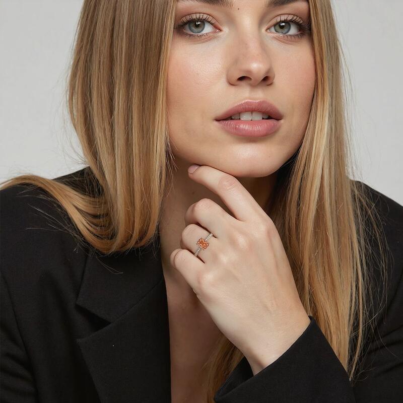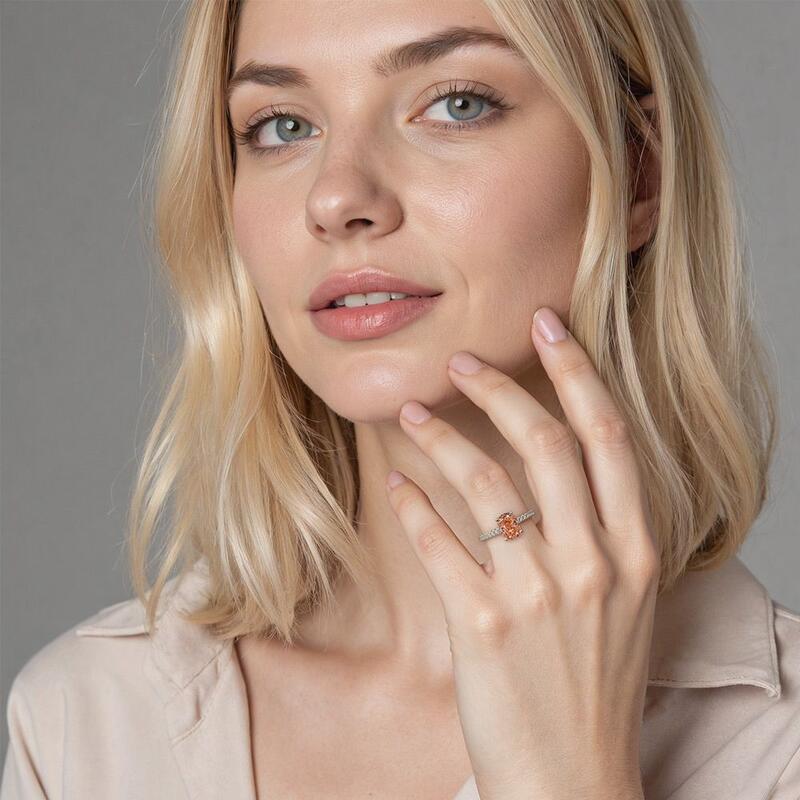This showstopping engagement ring leads with an exquisitely shaped oblong center stone that demands attention. Its unique hidden halo embellishment, enshrouding the gem in a concealed framing of glistening pave stones, adds an artful mystique. The band scintillates with its sparkling pathway, ensuring this glamorous ring steadfastly cheers the wearer with every twist and turn.