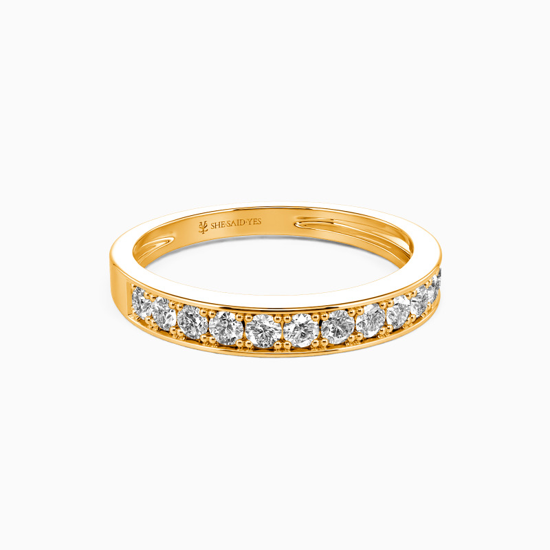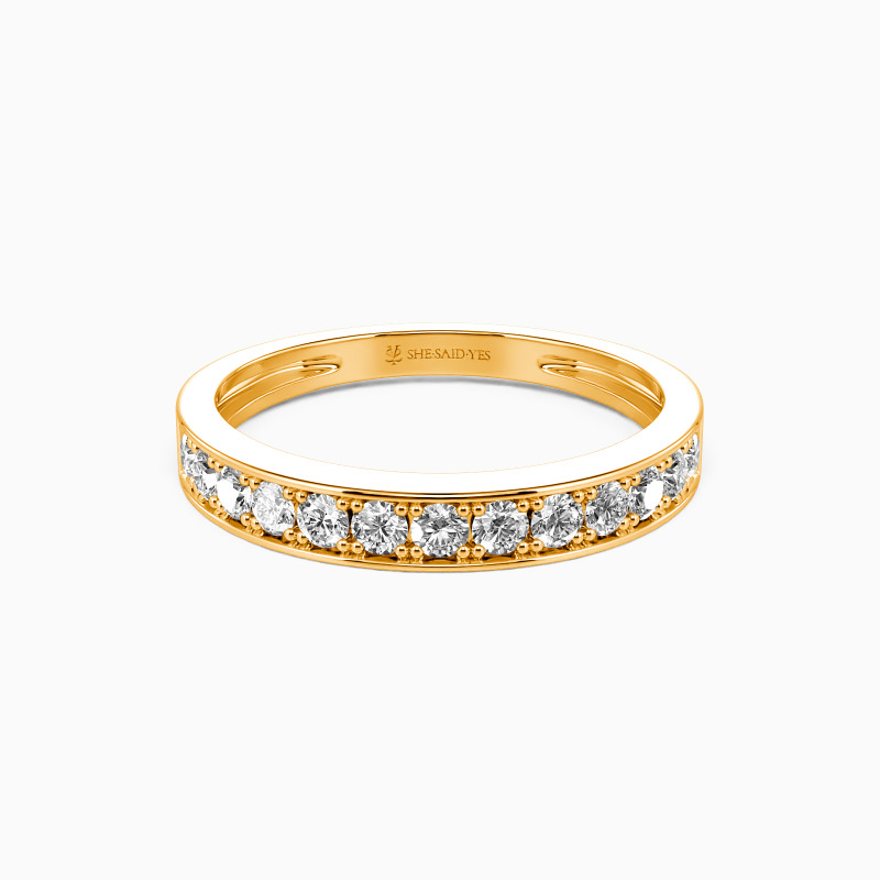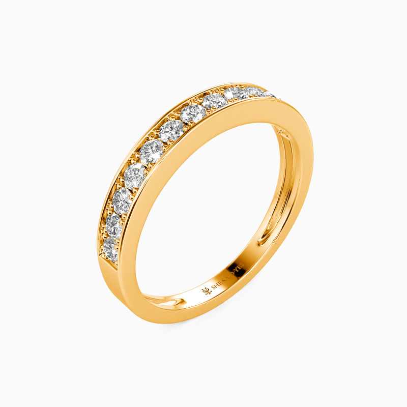The classic design presents a timeless appeal and beauty to this wedding ring. It features a sparkling row of accents in a pavé setting studded on the polished shank. Wear it alone to create a chic everyday look. You are the bright star to rescue my soul when I lose in a sea of darkness.