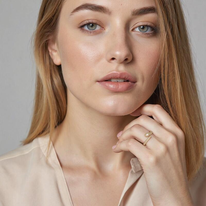 A sophisticated open ring showcases its elaborate craftsmanship with a delicately sinuous snake. Our distinctive accessory captures a brilliantly paved snake to reveal a unique personality. And a dazzling pear-cut gem stands atop the head in prongs, highlighting its gorgeous radiance. Wear it alone or at the top of our ring stack to create your fashion style.