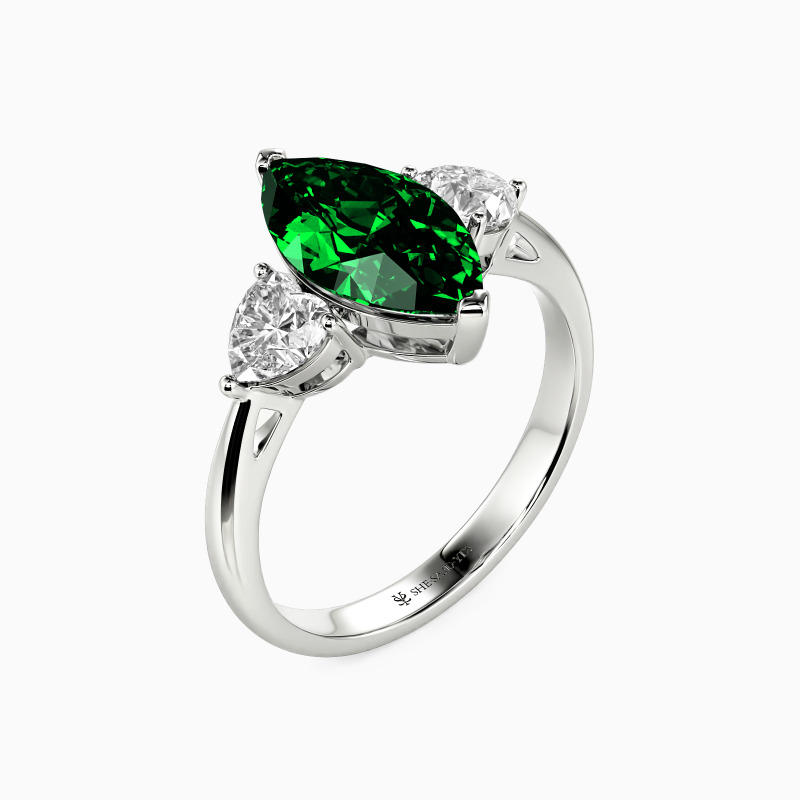 "My Heartbeat for You" Marquise Cut Three Stone Engagement Ring