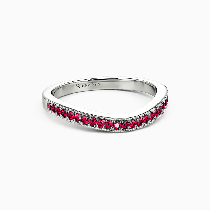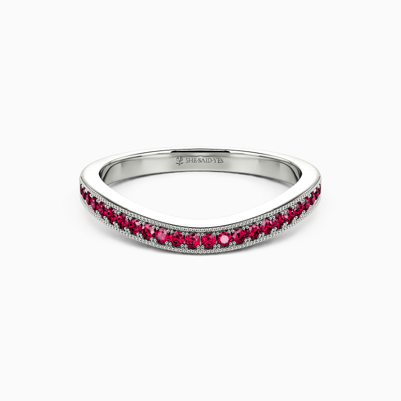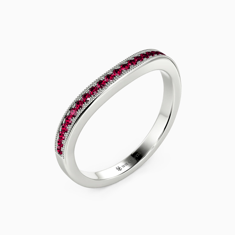 Catch your eye with the timeless beauty of our wedding band. Combining a softly curved shank and shimmering gemstone pave, this ring adds a touch of grace and presents your decent temperament.
