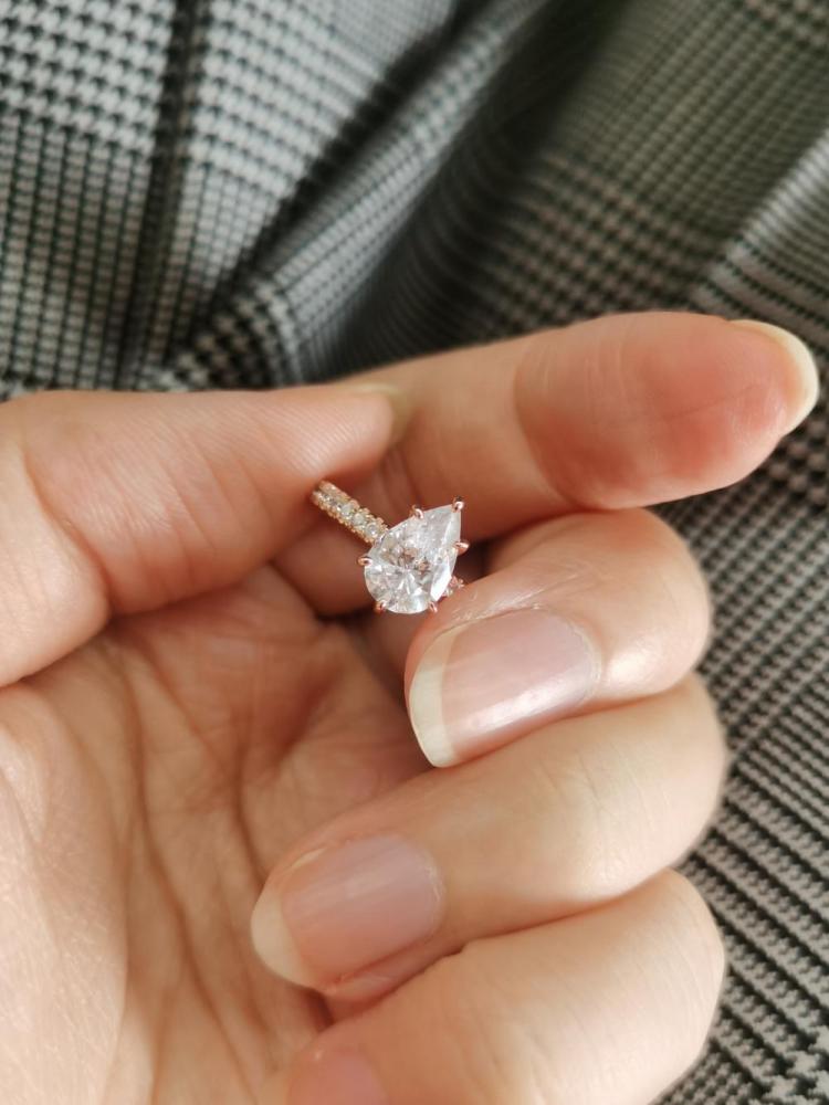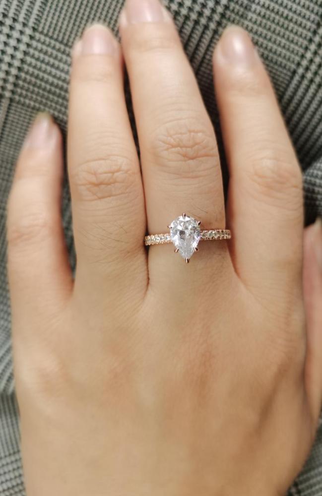 "My Soulmate" 1.5ct Pear Cut Side Stone Engagement Ring