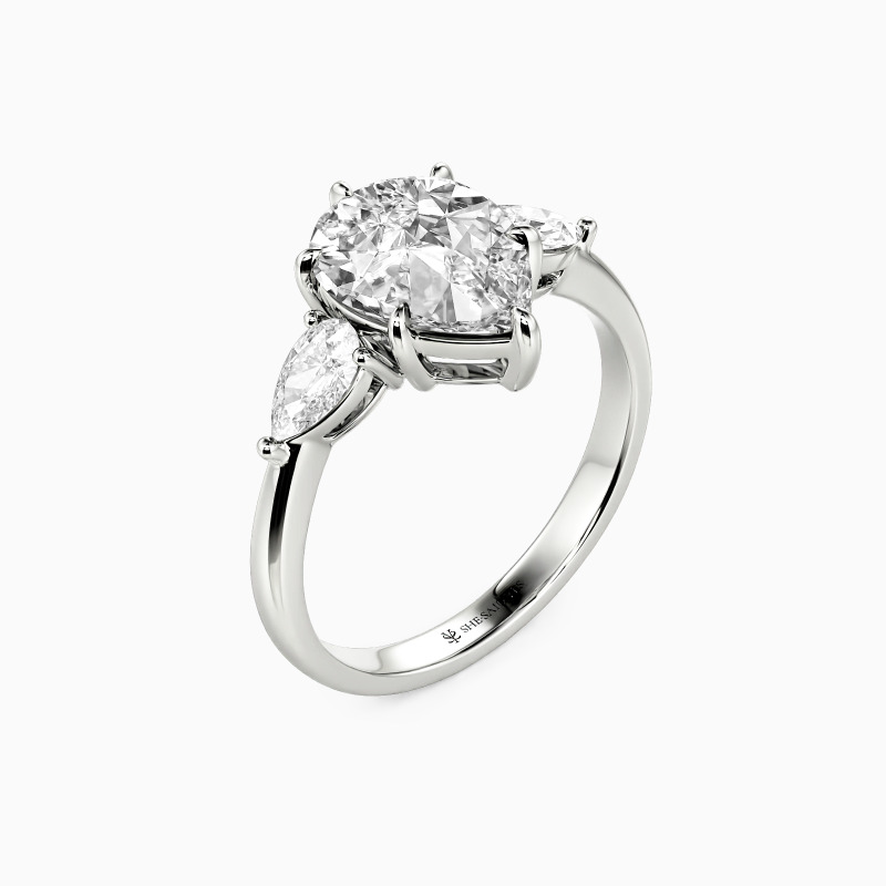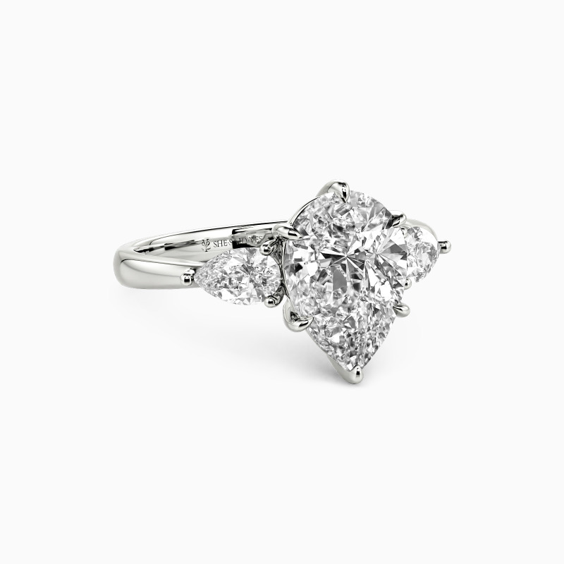 "Never-ending Story" Pear Cut Three Stone Engagement Ring