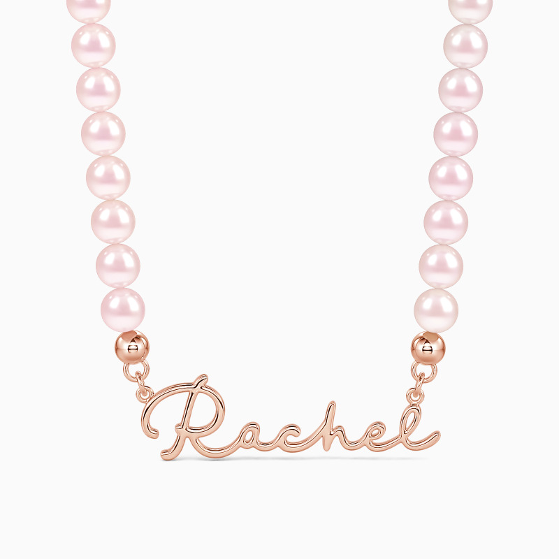 This elegant pearl necklace makes a thoughtful gift. Crafted with a single strand of cultured round pearls, it features a pendant in the center that can be customized with an engraved name or short message. Whether wearing your own name or that of a loved one, this personalized necklace is a unique way to express how much someone means to you with every beautiful bead.
