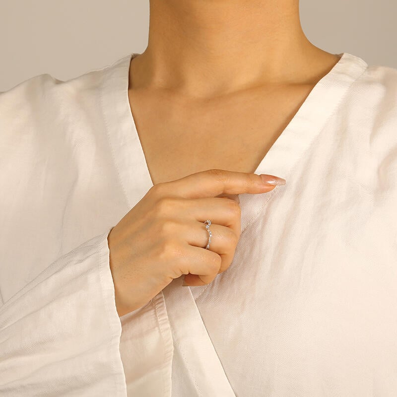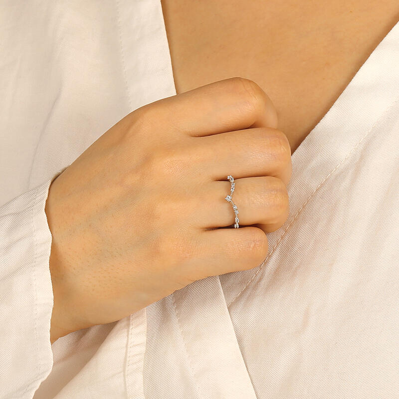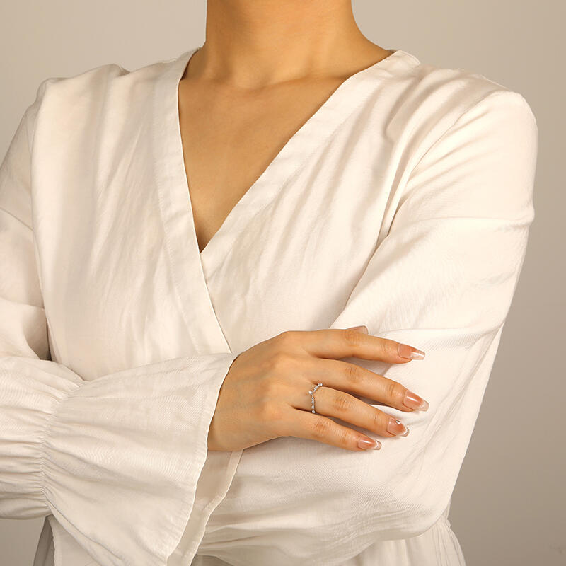 This exquisite wedding ring features a graceful V-shape design, adorned with sparkling gems delicately placed along its meticulously crafted shank. In addition, a round gemstone delicately adorns the ring at the V's tip, resembling a subtle crown. Versatile in design, it can be worn solo or paired with an engagement ring for a captivating stack. Experience the perfect blend of sophistication and versatility with this enchanting piece.