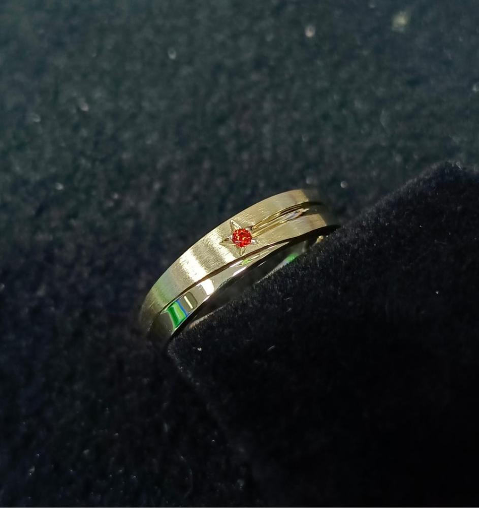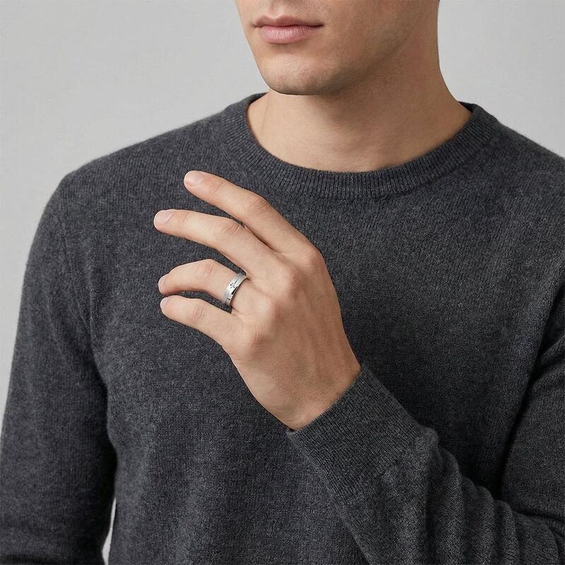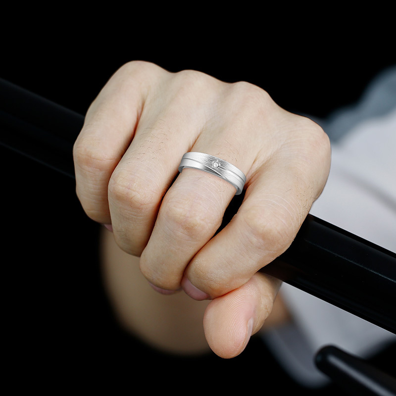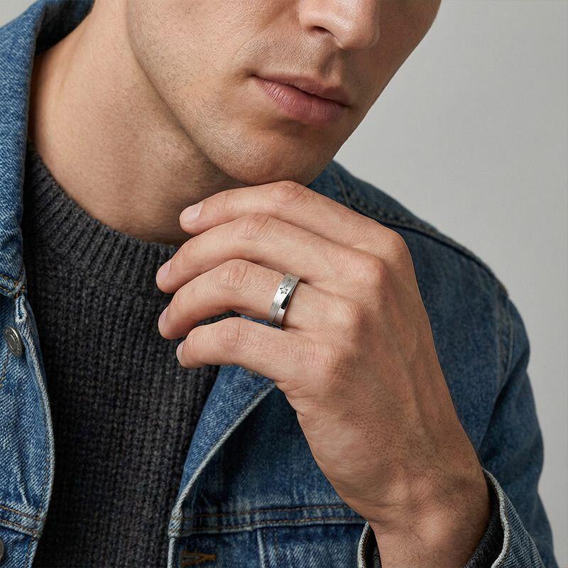 Crafted with celestial inspiration, this men's wedding band captures the ethereal beauty of a star's trajectory. The gleaming track gracefully encircles the ring, reflecting the brilliance of polished metal. Symbolizing eternal love and infinite possibilities, this celestial masterpiece represents the journey of two souls intertwined. Let this captivating band illuminate your commitment, as you embark on a lifelong voyage, guided by the light of everlasting love.