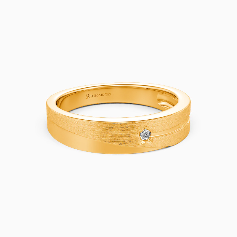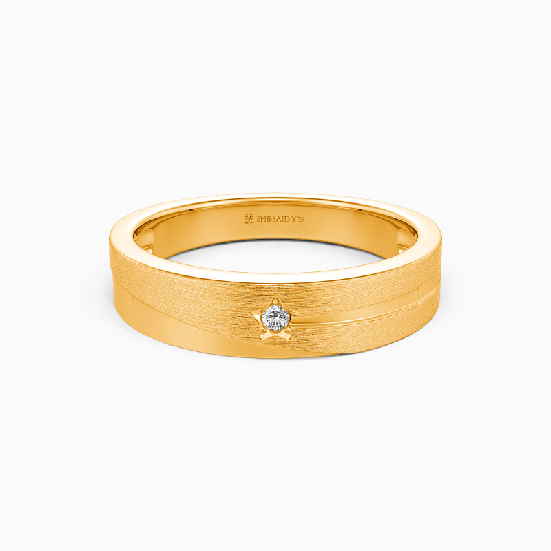 Crafted with celestial inspiration, this men's wedding band captures the ethereal beauty of a star's trajectory. The gleaming track gracefully encircles the ring, reflecting the brilliance of polished metal. Symbolizing eternal love and infinite possibilities, this celestial masterpiece represents the journey of two souls intertwined. Let this captivating band illuminate your commitment, as you embark on a lifelong voyage, guided by the light of everlasting love.