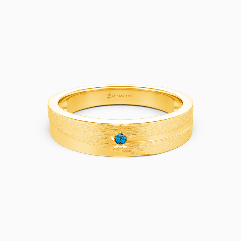 Crafted with celestial inspiration, this men's wedding band captures the ethereal beauty of a star's trajectory. The gleaming track gracefully encircles the ring, reflecting the brilliance of polished metal. Symbolizing eternal love and infinite possibilities, this celestial masterpiece represents the journey of two souls intertwined. Let this captivating band illuminate your commitment, as you embark on a lifelong voyage, guided by the light of everlasting love.