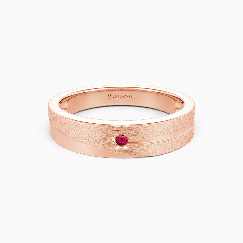 Crafted with celestial inspiration, this men's wedding band captures the ethereal beauty of a star's trajectory. The gleaming track gracefully encircles the ring, reflecting the brilliance of polished metal. Symbolizing eternal love and infinite possibilities, this celestial masterpiece represents the journey of two souls intertwined. Let this captivating band illuminate your commitment, as you embark on a lifelong voyage, guided by the light of everlasting love.