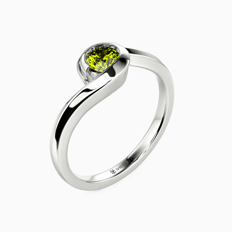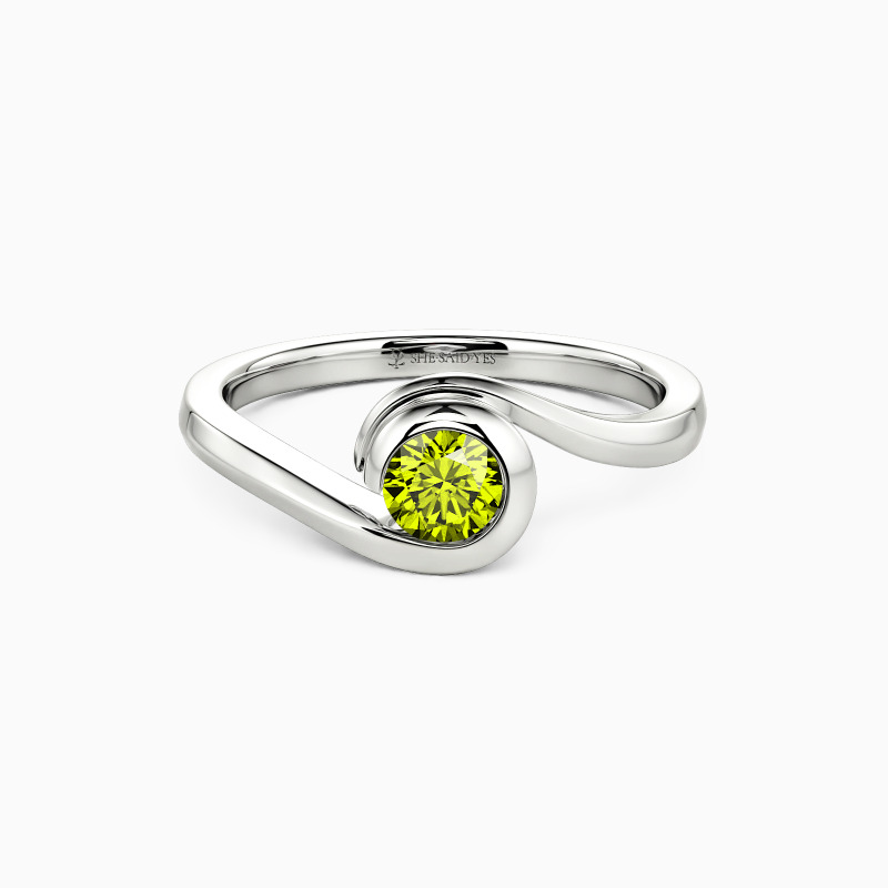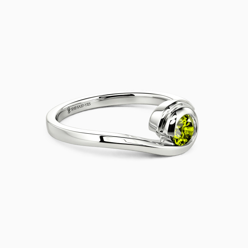 The wavy design will show you the curvaceous beauty of our delicate engagement ring. Featuring a twinkling round gem in the middle entirely wrapped by a precious bezel extended from the flowing shank, this contemporary look defines your compelling charisma and sculpts the message of eternal love.