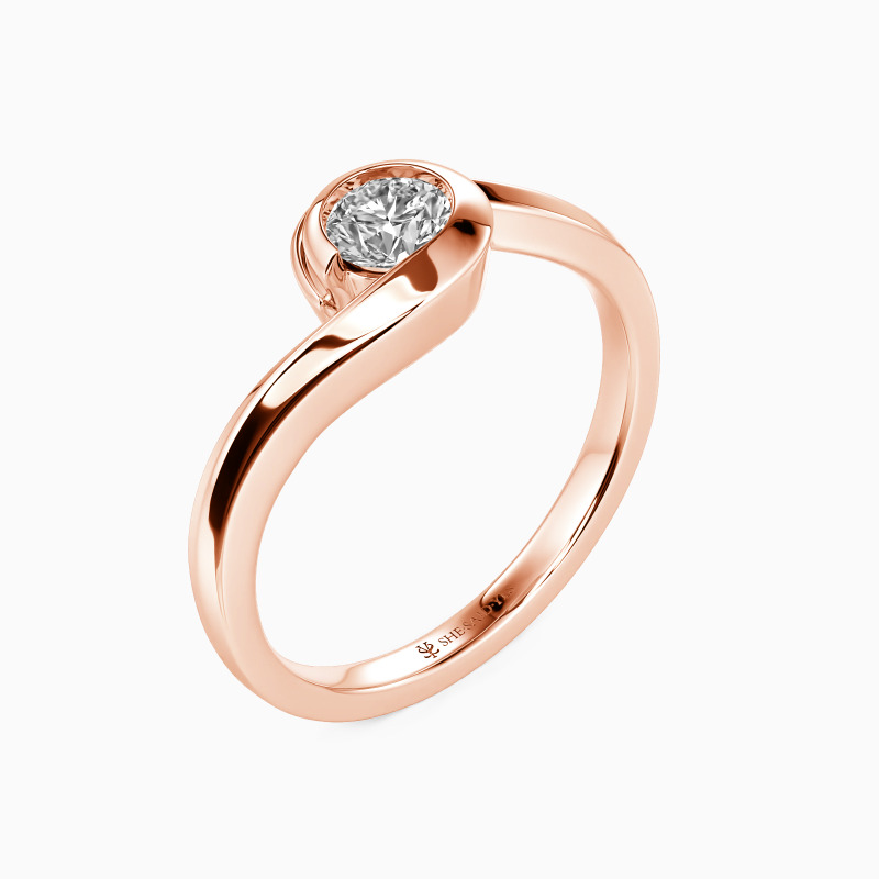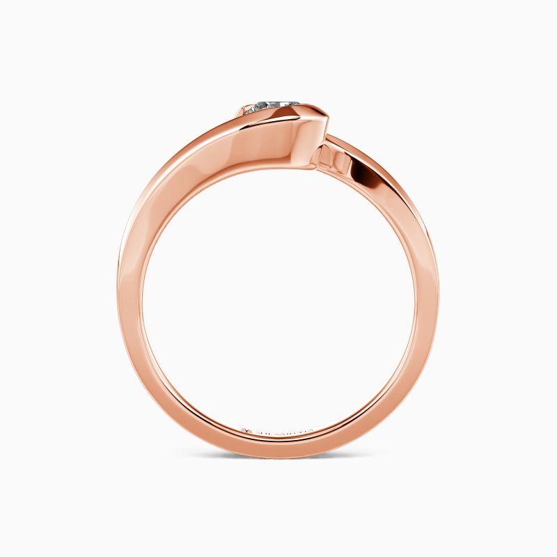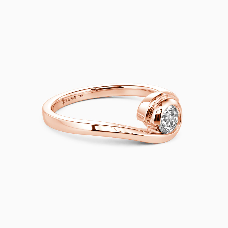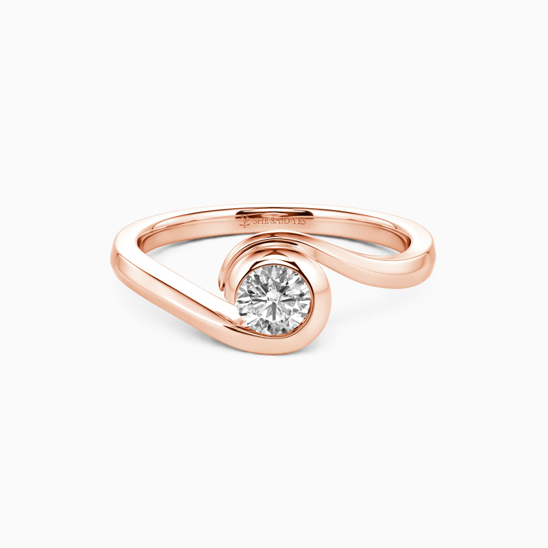 The wavy design will show you the curvaceous beauty of our delicate engagement ring. Featuring a twinkling round gem in the middle entirely wrapped by a precious bezel extended from the flowing shank, this contemporary look defines your compelling charisma and sculpts the message of eternal love.