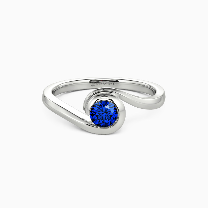 The wavy design will show you the curvaceous beauty of our delicate engagement ring. Featuring a twinkling round gem in the middle entirely wrapped by a precious bezel extended from the flowing shank, this contemporary look defines your compelling charisma and sculpts the message of eternal love.