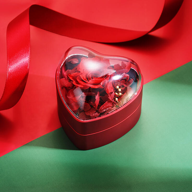 "Preserved Forever Rose" Heart-Shaped Jewelry Box Red