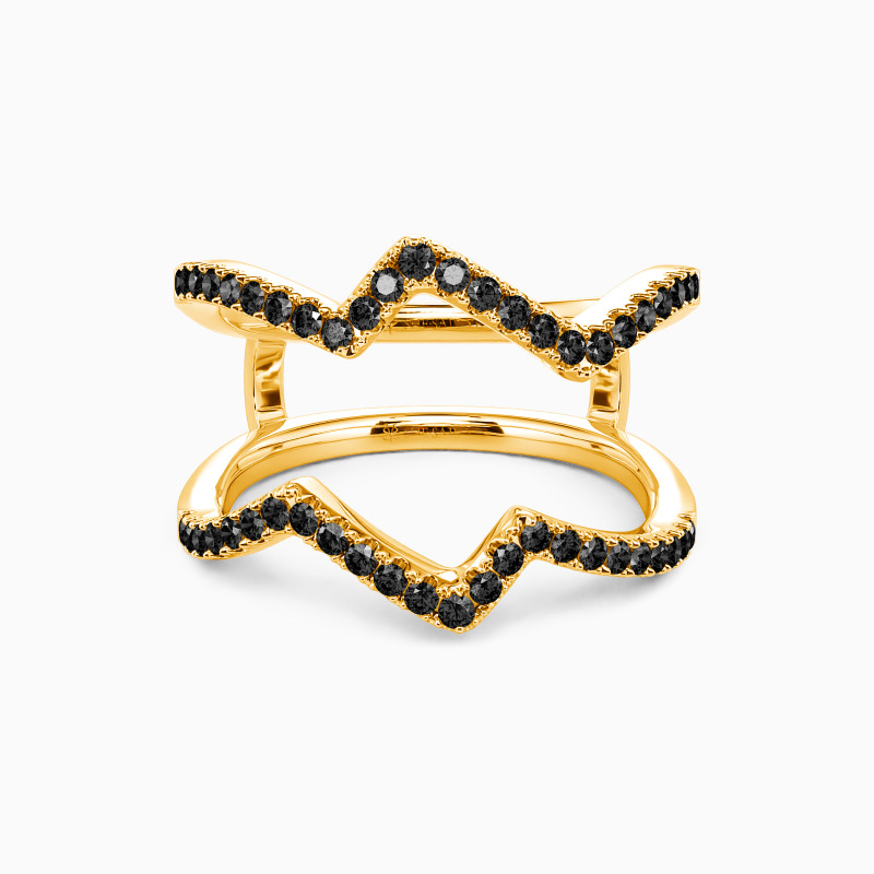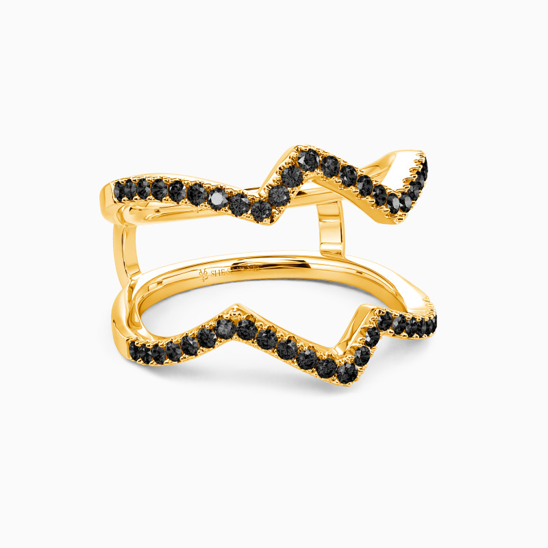 This ring enhancer features a modern geometric wave design paved with dazzling round gems. The brilliant gemstones catch and reflect light beautifully, adding a touch of sophistication to any look. Meticulously crafted, it is a statement piece that exudes elegance and charm, perfect for those seeking a blend of contemporary style and timeless allure.