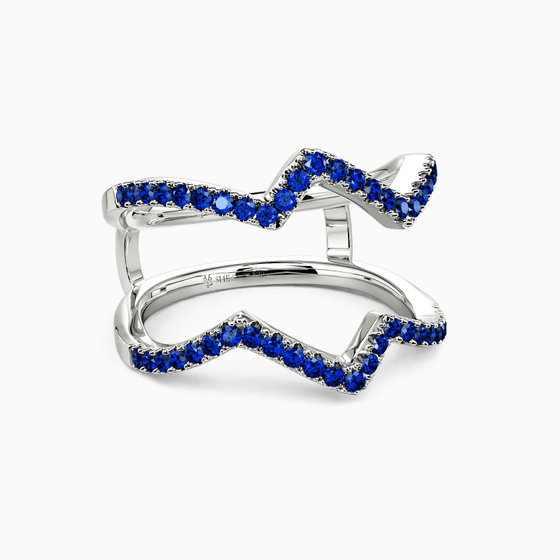 This ring enhancer features a modern geometric wave design paved with dazzling round gems. The brilliant gemstones catch and reflect light beautifully, adding a touch of sophistication to any look. Meticulously crafted, it is a statement piece that exudes elegance and charm, perfect for those seeking a blend of contemporary style and timeless allure.