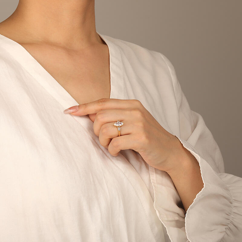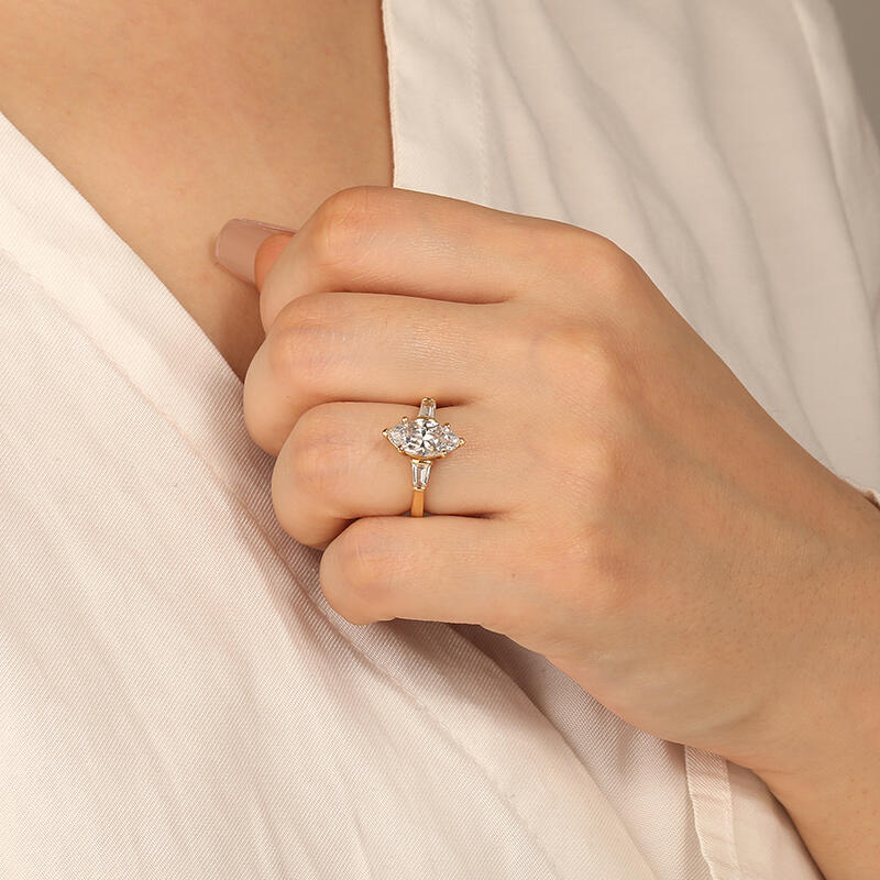 "Pure Love For You" Marquise Cut Three Stone Engagement Ring