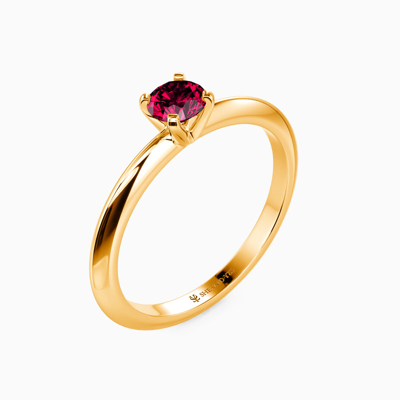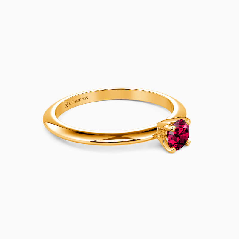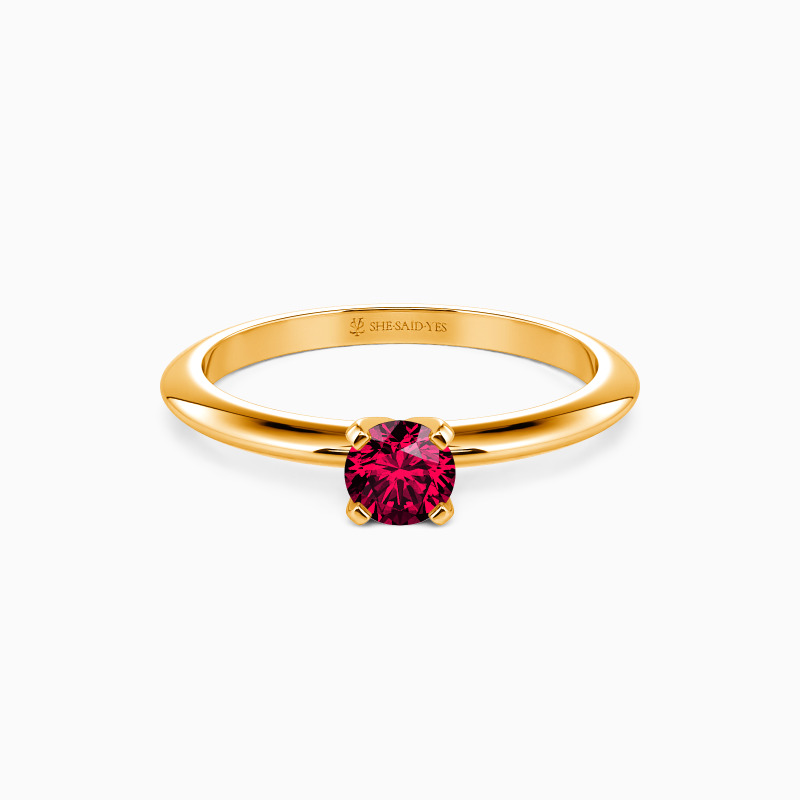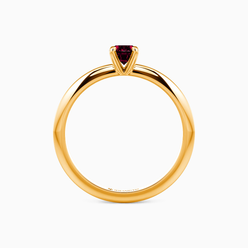 This solitaire ring combines simplicity with sophistication. A round-cut gem sits securely in a four-prong setting, while the knife edge shank offers a sleek, modern profile. The crisp lines of the band draw attention to the center stone, creating a harmonious balance. This refined design speaks to those who appreciate clean aesthetics and timeless elegance in their jewelry choices.